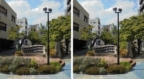 今日のエントリーはステレオグラム。 風景を立体視して楽しんでください! とある街角の遊歩道です。 植栽の奥行きがわかりますか? ステレオグラムの見方はこちら↓ https://www.omake-t.com/stereo.html ↓他にも錯視やトリックイラスト作品を多数展示中。 …